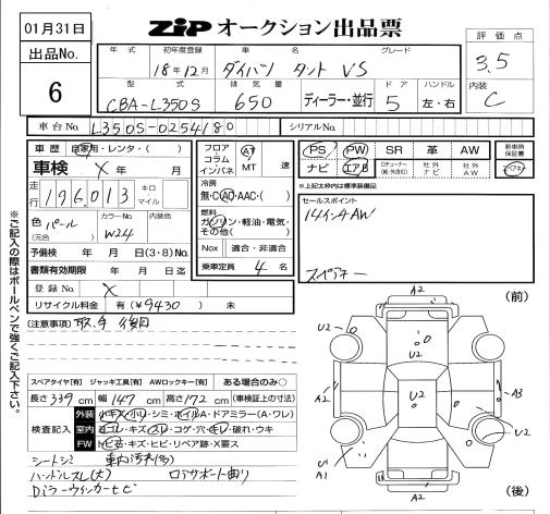 | CUSTOM VS TURBO | ABA-L350S | EF-DET | FF | 4AT | 659cc | 64ps(47kW)/6400rpm | AИ-92 | 1 554 000 | |
