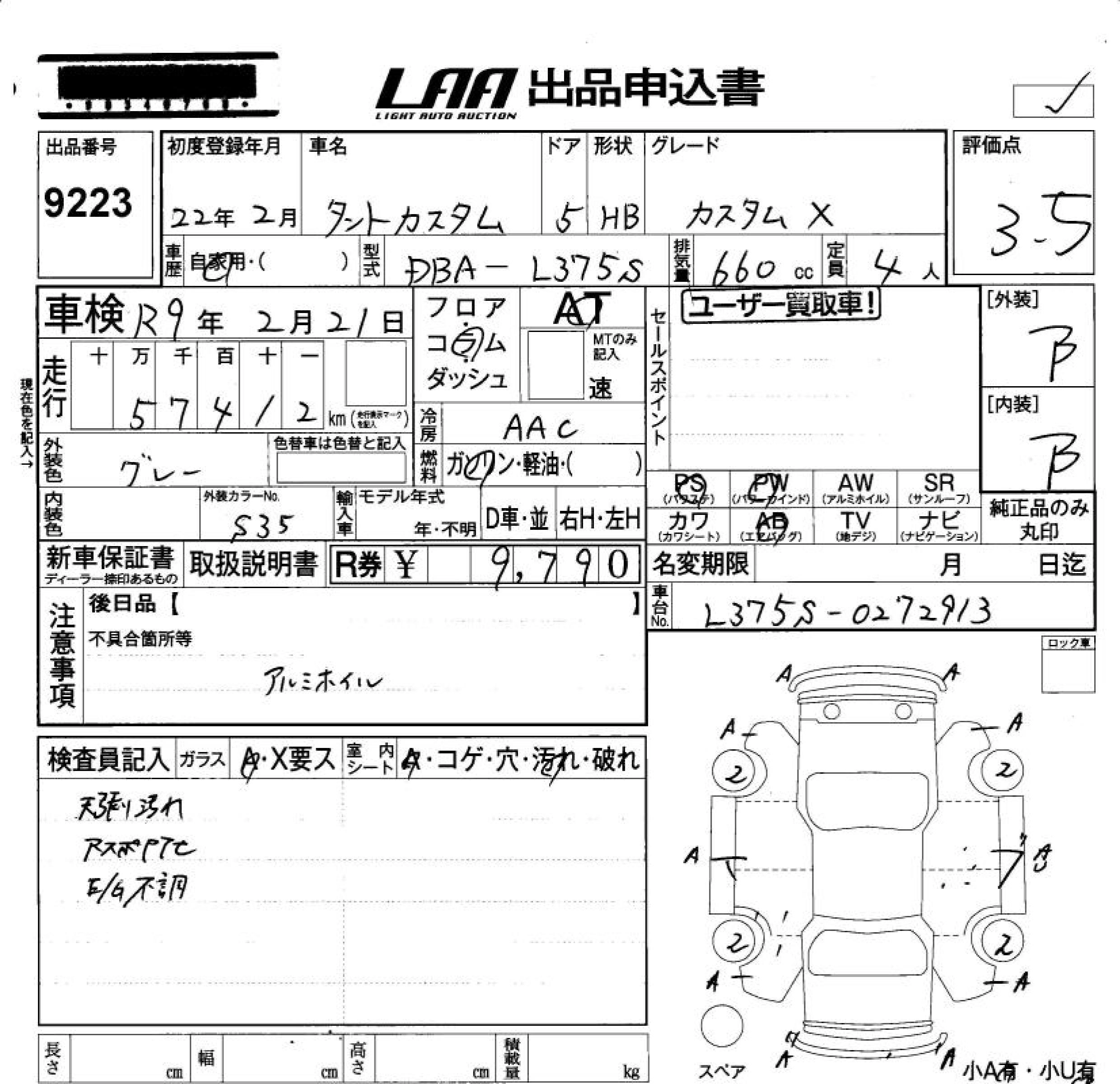 | L | DBA-L375S | KF-VE | FF | CVT | 658cc | 58ps(43kW)/7200rpm | AИ-92 | 1 160 000 |