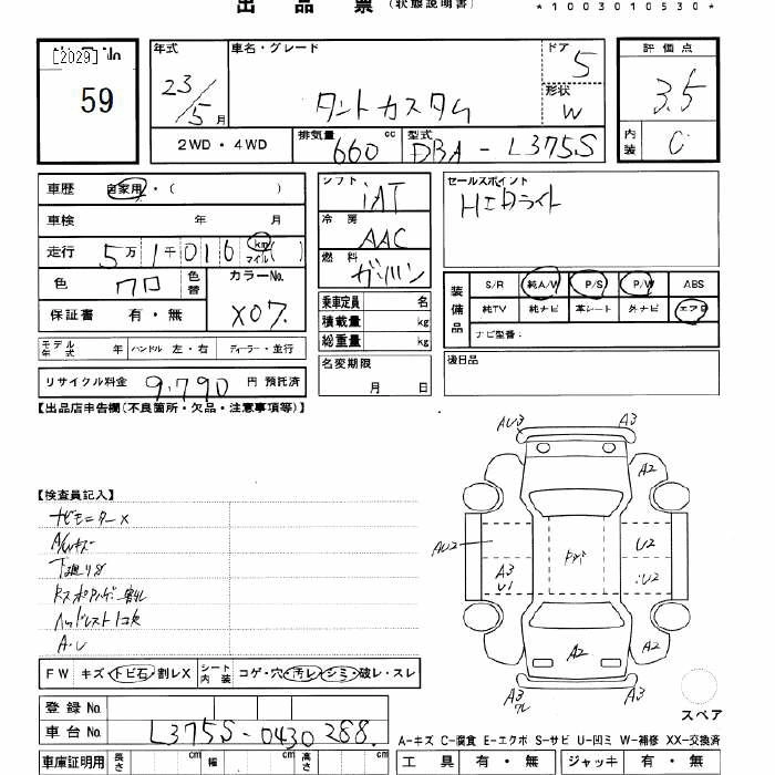 CUSTOM L DBA-L375S KF FF CVT 658cc 52ps(38kW)/7200rpm AИ-92 1 440 000