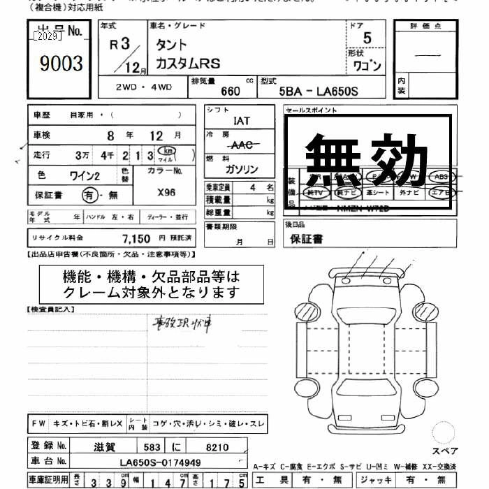 DAIHATSU TANTO 2021 г., лот № 9003