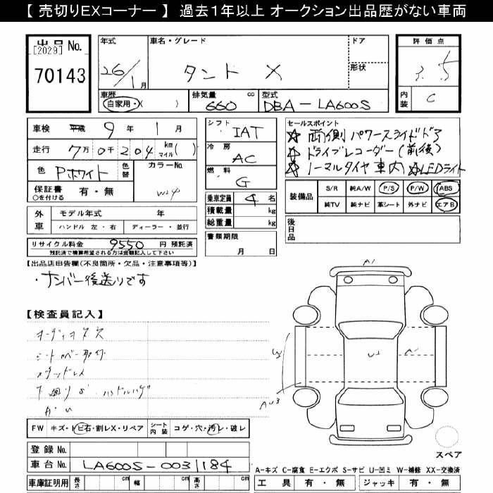 | CUSTOM X SMART SELECTION SN | DBA-LA600S | KF | FF | CVT | 658cc | 52ps(38kW)/6800rpm | AИ-92 | 1 602 000 | |
