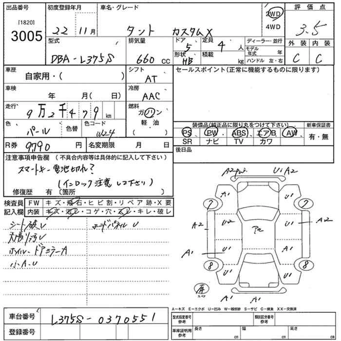 CUSTOM X DBA-L375S KF-VE FF CVT 658cc 58ps(43kW)/7200rpm AИ-92 1 500 000