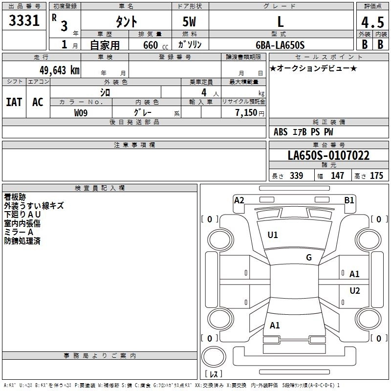 DAIHATSU TANTO 2021 г., лот № 3331
