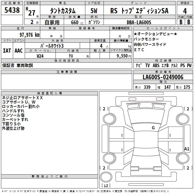 CUSTOM X TOP EDITION SA II DBA-LA600S KF FF CVT 658cc 52ps(38kW)/6800rpm AИ-92 1 652 400