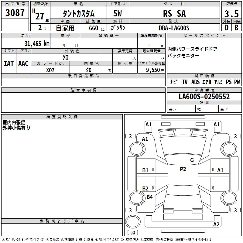 CUSTOM RS DBA-LA600S KF FF CVT 658cc 64ps(47kW)/6400rpm AИ-92 1 641 600