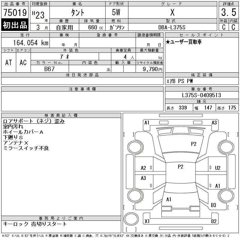 | X | DBA-L375S | KF | FF | CVT | 658cc | 52ps(38kW)/6800rpm | AИ-92 | 1 320 000 | |