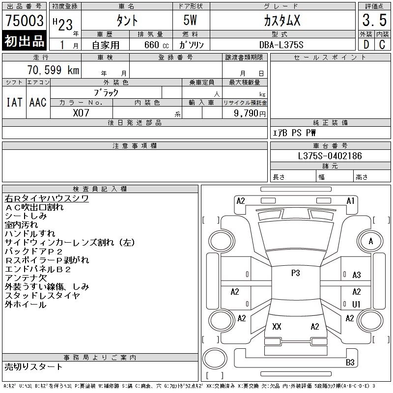 | CUSTOM L | DBA-L375S | KF | FF | CVT | 658cc | 52ps(38kW)/7200rpm | AИ-92 | 1 440 000 | |