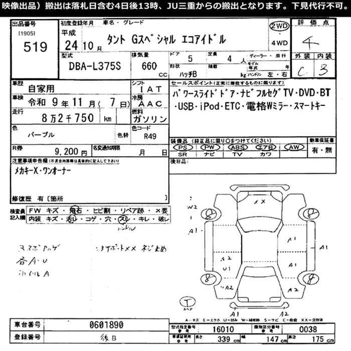 | X | DBA-L375S | KF | FF | CVT | 658cc | 52ps(38kW)/6800rpm | AИ-92 | 1 320 000 | |