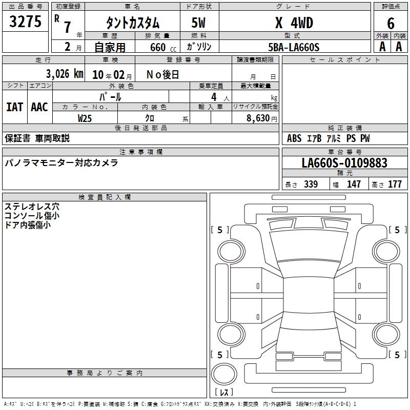 Объем660 сс Трансмиссия Автомат Привод 4WD Оценка6