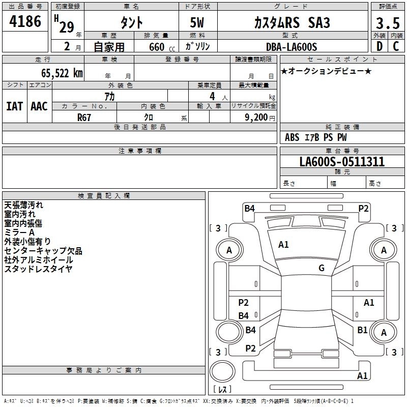 | CUSTOM X TOP EDITION LIMITED SA III | DBA-LA600S | KF | FF | CVT | 658cc | 52ps(38kW)/6800rpm | AИ-92 | 1 684 800 | |