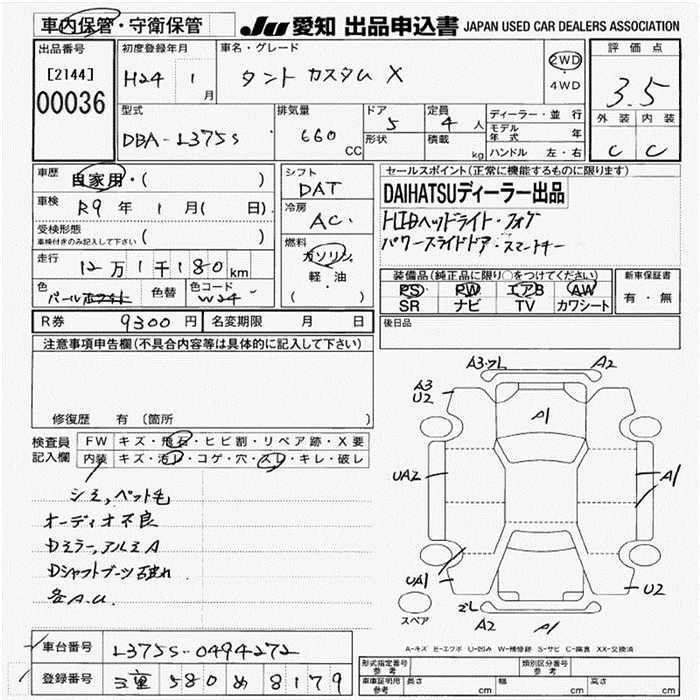 | CUSTOM X | DBA-L375S | KF | FF | CVT | 658cc | 52ps(38kW)/6800rpm | AИ-92 | 1 550 000 | |