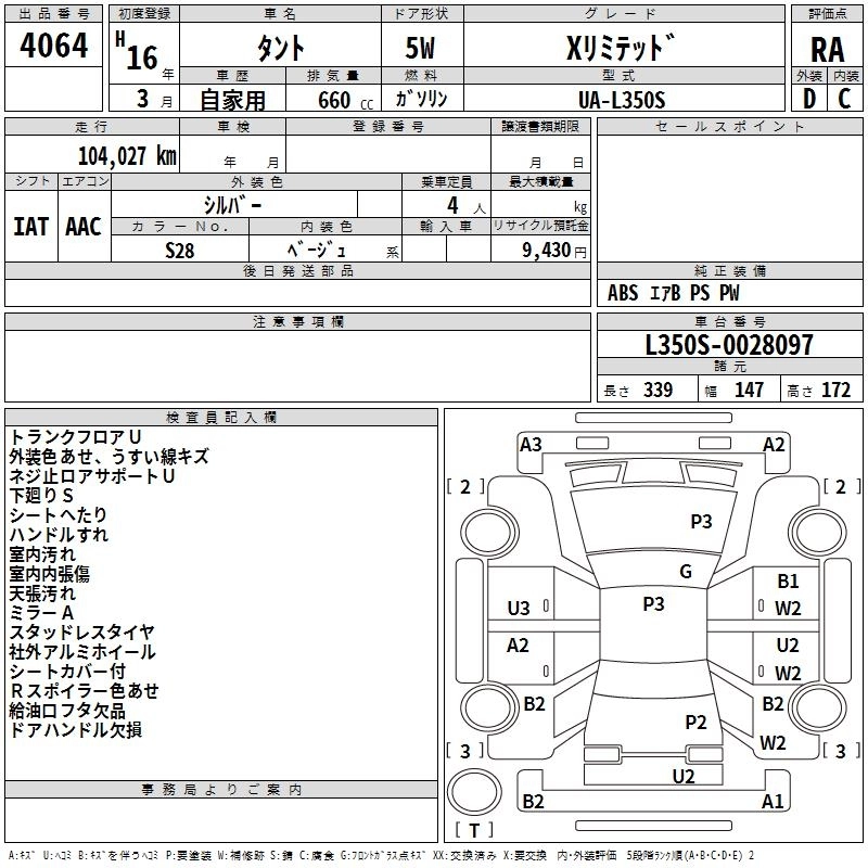 | X SMILE SELECTION | CBA-L350S | EF-VE | FF | 4AT | 659cc | 58ps(43kW)/7600rpm | AИ-92 | 1 218 000 | |