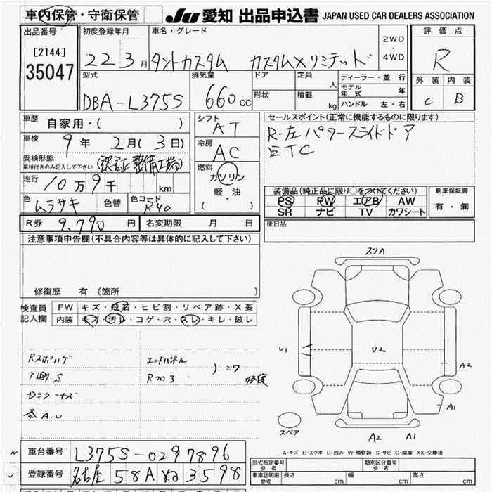 CUSTOM X DBA-L375S KF-VE FF CVT 658cc 58ps(43kW)/7200rpm AИ-92 1 500 000