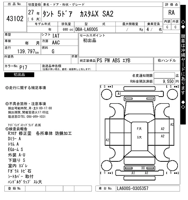 | CUSTOM X | DBA-LA600S | KF | FF | CVT | 658cc | 52ps(38kW)/6800rpm | AИ-92 | 1 528 200 | |