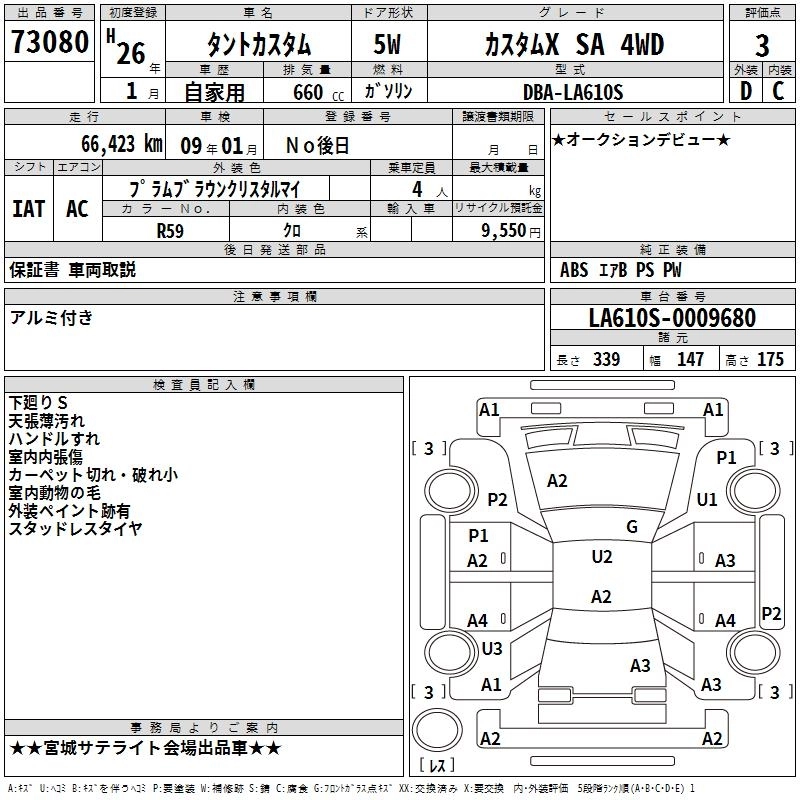 | CUSTOM X SMART SELECTION SN | DBA-LA600S | KF | FF | CVT | 658cc | 52ps(38kW)/6800rpm | AИ-92 | 1 602 000 | |