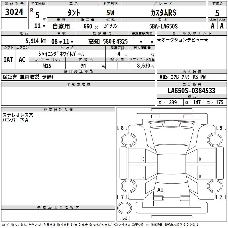 Статус выставлен на аукцион Лот 3024 Аукцион TAA Shikoku Дата аукциона 31.03.2026