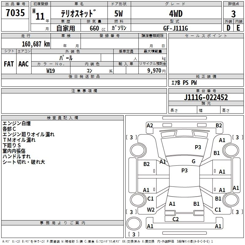 DAIHATSU TERIOS KID 1999 г., лот № 7035