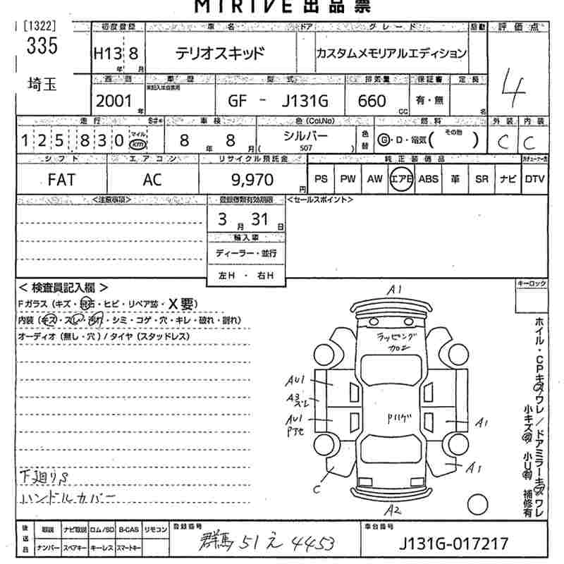 | CUSTOM MEMORIAL EDITION | GF-J131G | EF-DEM | FR | 5MT | 659cc | 60ps(44kW)/6800rpm | AИ-92 | 1 205 000 |