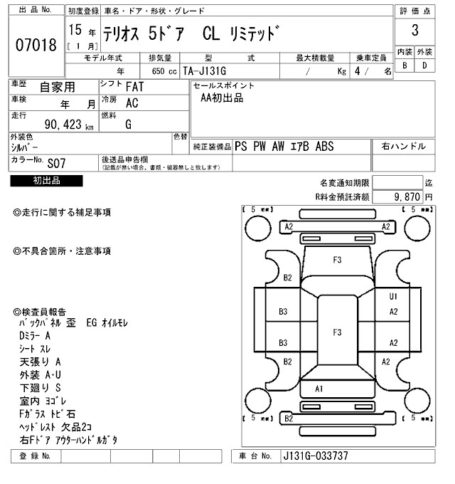 | CL LIMITED | TA-J102G | K3-VE | Full-time 4WD | 4AT | 1297cc | 90ps(66kW)/6000rpm | AИ-92 | 1 530 000 | |