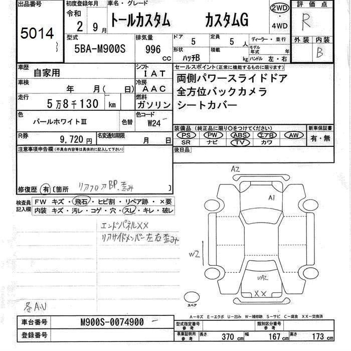 CUSTOM G 5BA-M900S 1KR-FE FF CVT 996cc 69ps(51kW)/6000rpm AИ-92 1 914 000