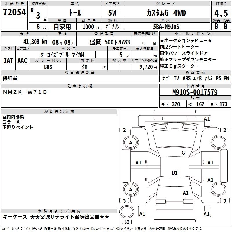 Год выпуска2021 Пробег 41 000 км КузовM910S Комплектация CUSTOM G 4WD