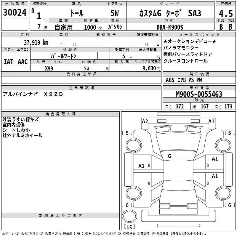 | CUSTOM G LIMITED II SA III | DBA-M910S | 1KR-FE | Full-time 4WD | CVT | 996cc | 69ps(51kW)/6000rpm | AИ-92 | 2 106 500 | |