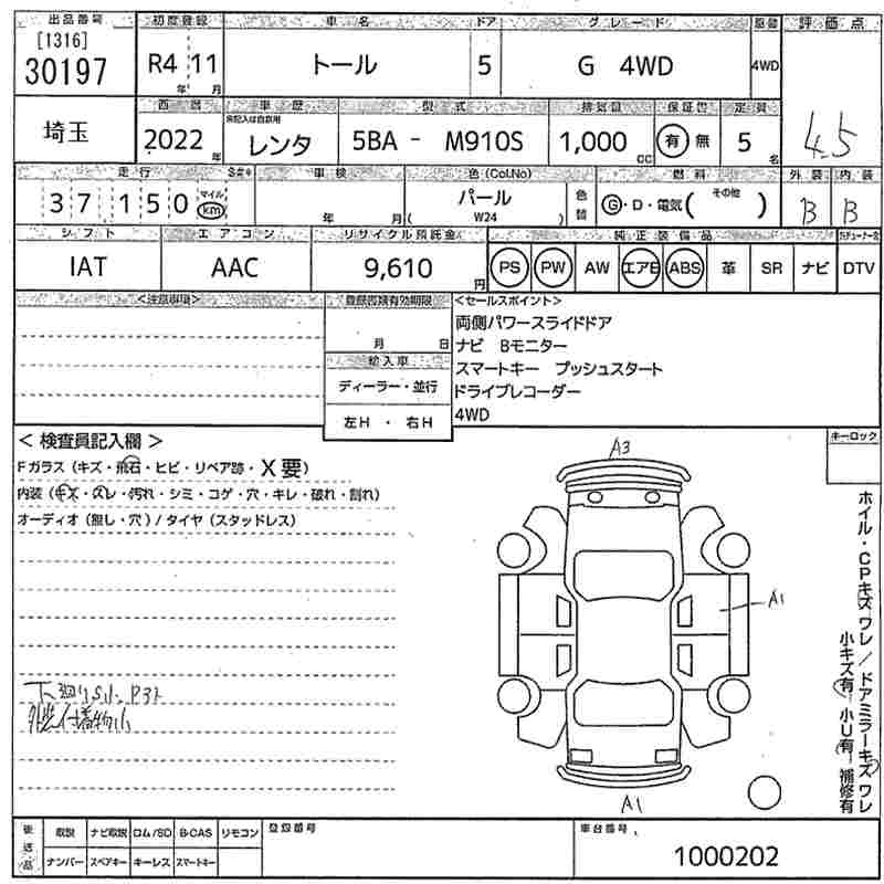 Год выпуска2022 Пробег 37 000 км КузовM910S КомплектацияG 4WD