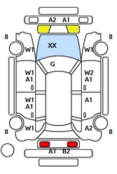RXВосстановленная трещина на ветровом стекле (требует замены)