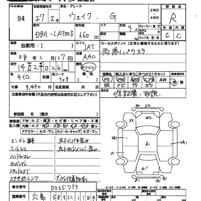| L FINE SELECTION SA | DBA-LA700S | KF | FF | CVT | 658cc | 52ps(38kW)/6800rpm | AИ-92 | 1 587 600 |