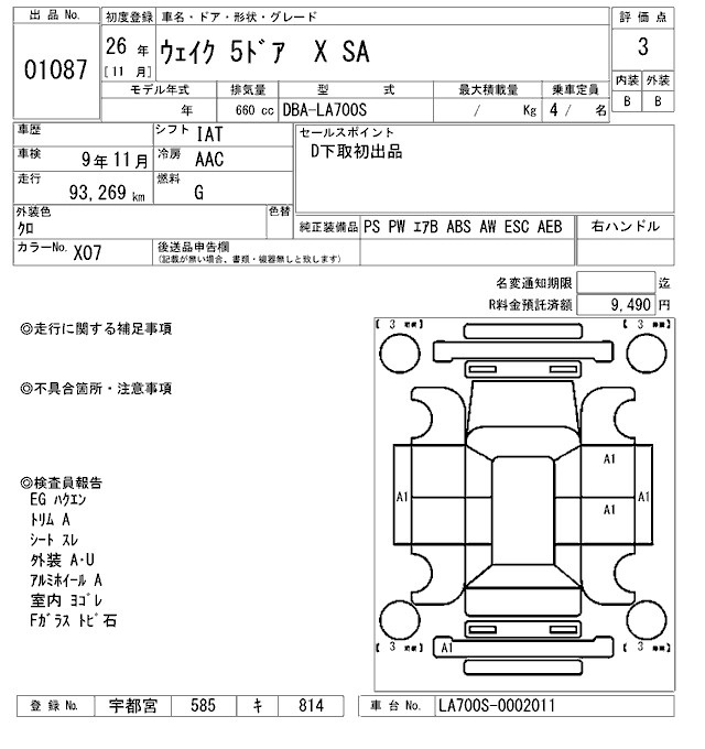 | X | DBA-LA700S | KF | FF | CVT | 658cc | 64ps(47kW)/6400rpm | AИ-92 | 1 620 000 | |