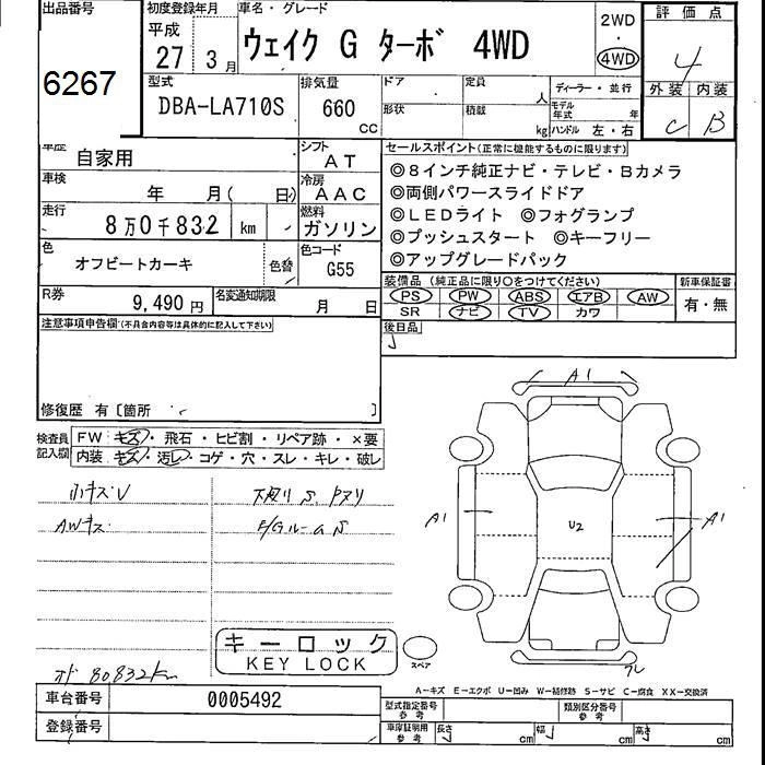 | L FINE SELECTION SA | DBA-LA710S | KF | Full-time 4WD | CVT | 658cc | 52ps(38kW)/6800rpm | AИ-92 | 1 711 800 | |