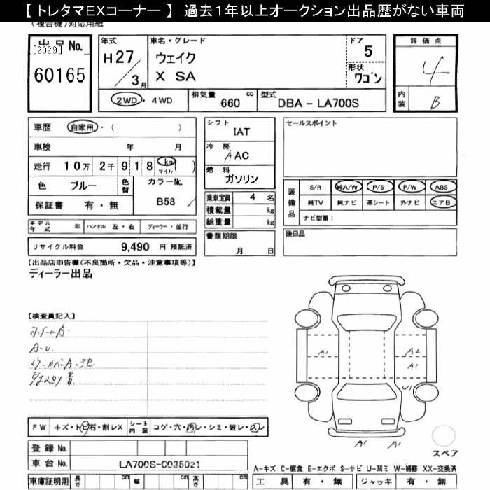 | L FINE SELECTION SA | DBA-LA700S | KF | FF | CVT | 658cc | 52ps(38kW)/6800rpm | AИ-92 | 1 587 600 |