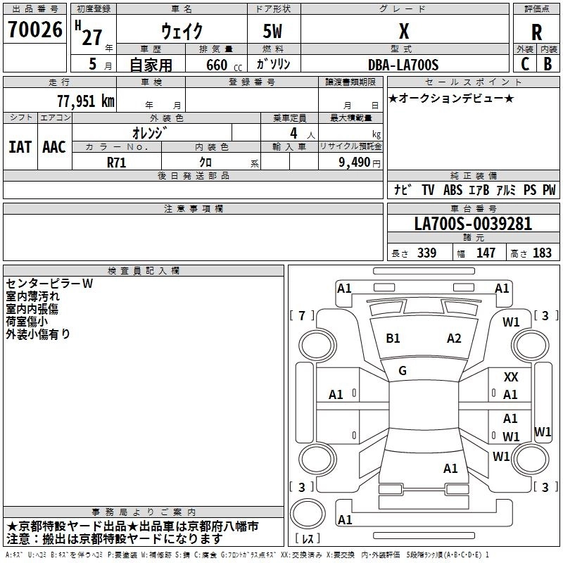 | L FINE SELECTION SA | DBA-LA700S | KF | FF | CVT | 658cc | 52ps(38kW)/6800rpm | AИ-92 | 1 587 600 |