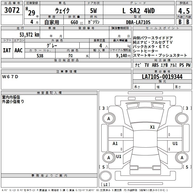 DAIHATSU WAKE 2017 г., лот № 3072