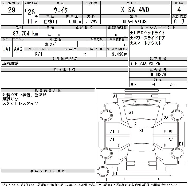 | X SA | DBA-LA710S | KF | Full-time 4WD | CVT | 658cc | 64ps(47kW)/6400rpm | AИ-92 | 1 787 400 | |