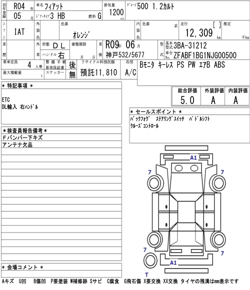 FIAT 500 2022 г., лот № 1070