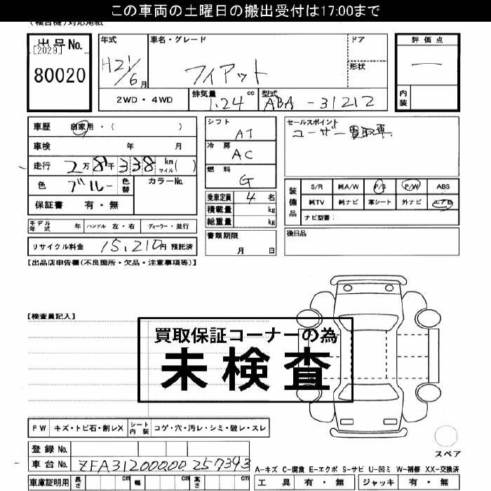| BY DIESEL | ABA-31214 | 169A3 | FF | 5AT | 1368cc | 100ps(74kW)/6000rpm | AИ-95 | 2 740 000 |