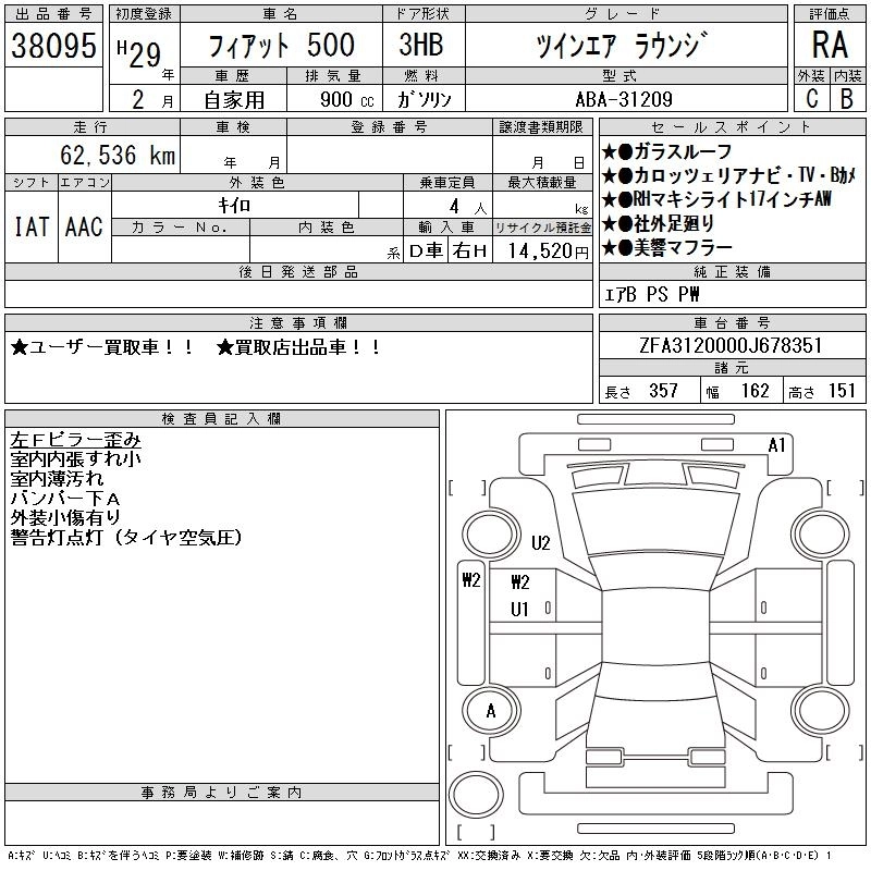 FIAT 500 2017 г., лот № 38095