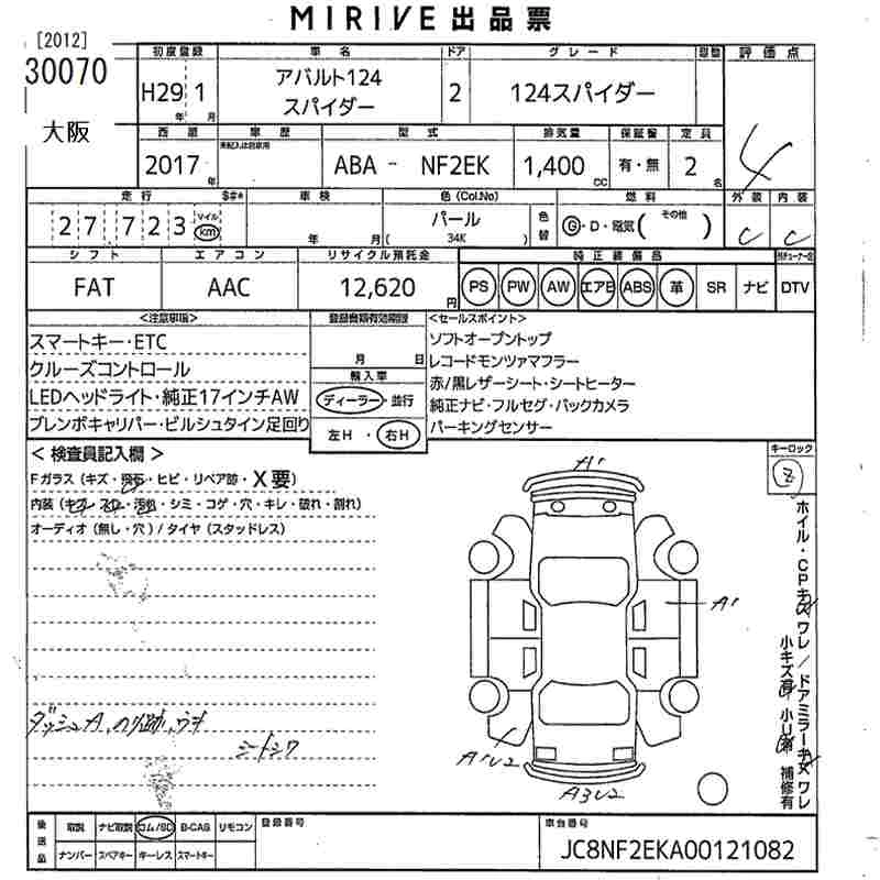 FIAT ABARTH 124 SPIDER 2017 г., лот № 30070