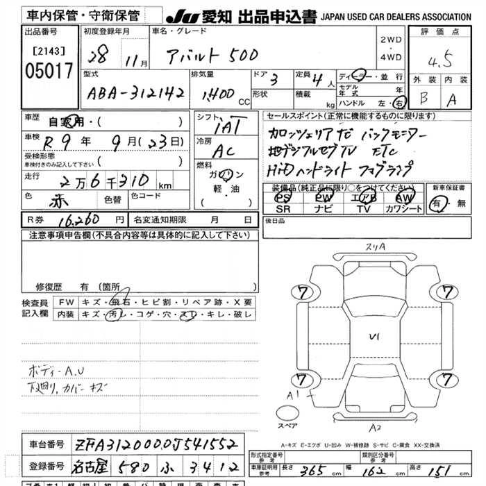 Статус выставлен на аукцион Лот 5017 Аукцион JU Aichi Дата аукциона 29.01.2026