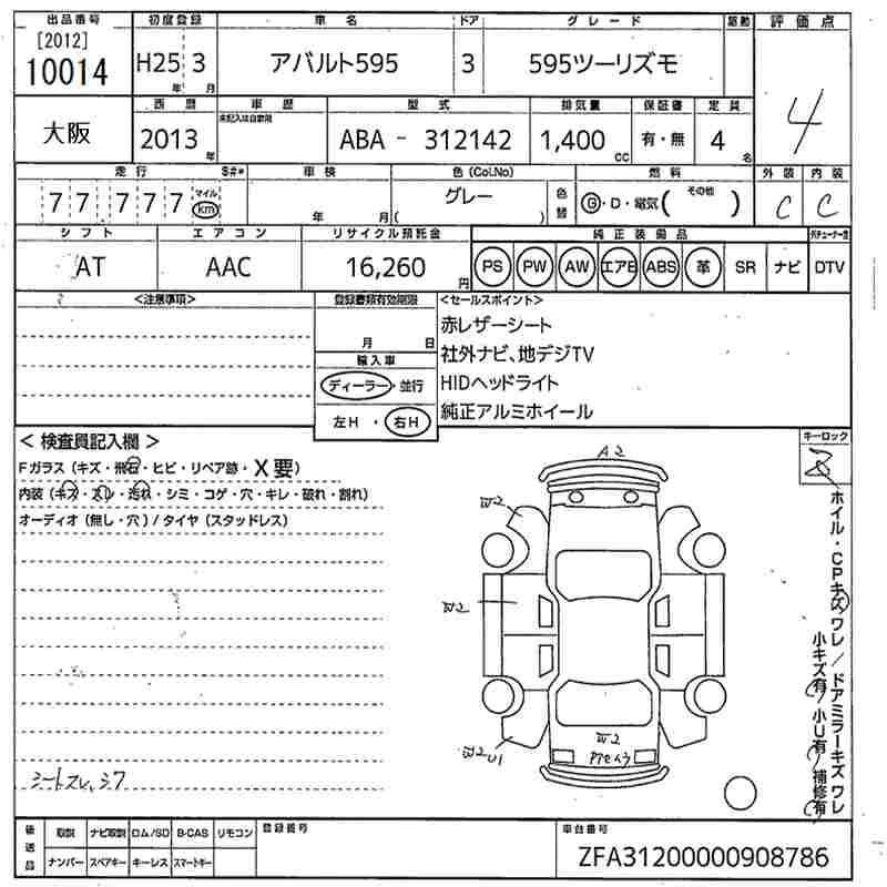 FIAT ABARTH 595 2013 г., лот № 10014