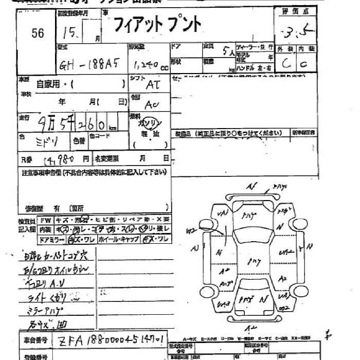 | HGT ABARTH | GF-188A1 | ---- | FF | 5MT | 1746cc | 130ps(96kW)/6300rpm | AИ-95 | 2 190 000 | |