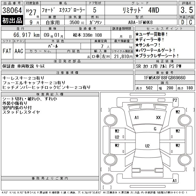 | XLT | ABA-1FM5K8 | 8 | Full-time 4WD | 6AT | 3495cc | 294ps(216kW)/6500rpm | AИ-92 | 4 890 000 | |