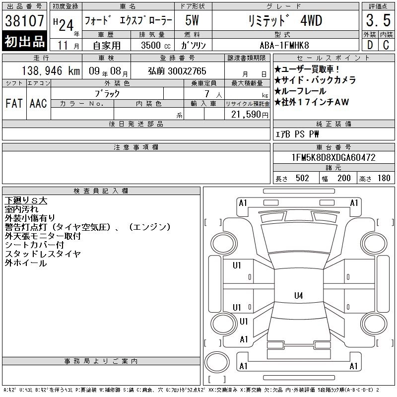 FORD EXPLORER 2012 г., лот № 38107