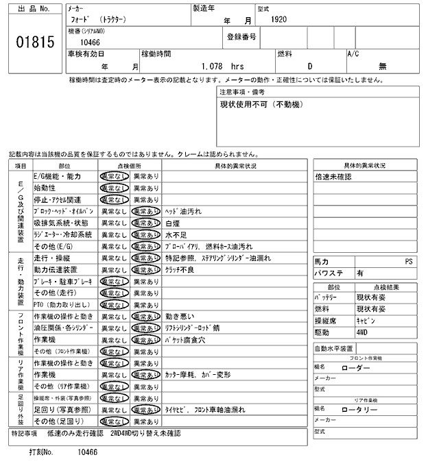Статус выставлен на аукцион Лот 1815 Аукцион ARAI Kenki Дата аукциона 17.03.2026