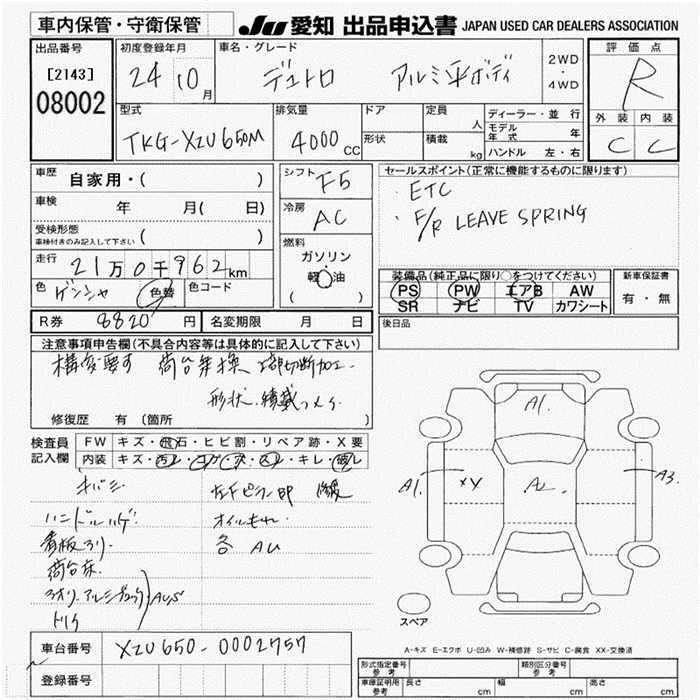 Статус выставлен на аукцион Лот 8002 Аукцион JU Aichi Дата аукциона 29.01.2026