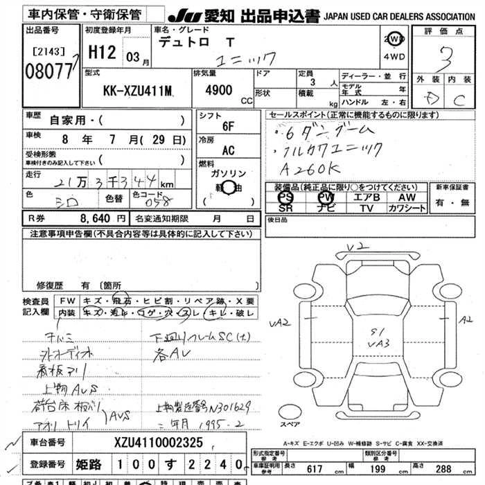 Статус выставлен на аукцион Лот 8077 Аукцион JU Aichi Дата аукциона 29.01.2026