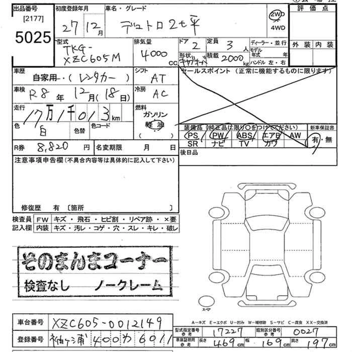 Статус выставлен на аукцион Лот 5025 Аукцион JU Tokyo Дата аукциона 16.03.2026