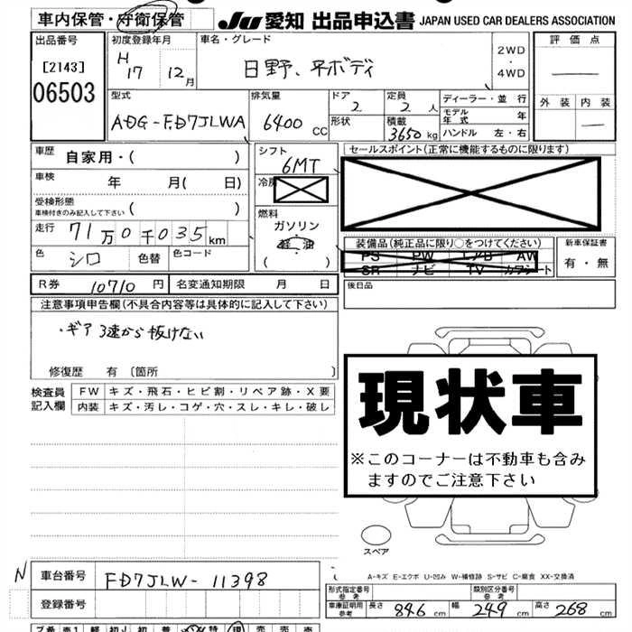 Год выпуска2005 Пробег 710 000 км КузовFD7JLWA Комплектация COMMON BODY 3.65T