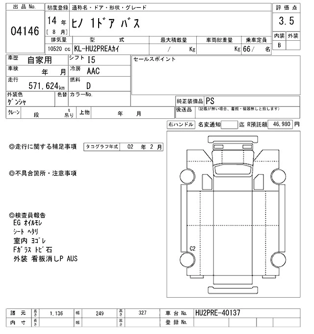 Год выпуска2002 Пробег 572 000 км КузовHU2PREA Комплектация BUS